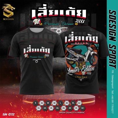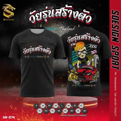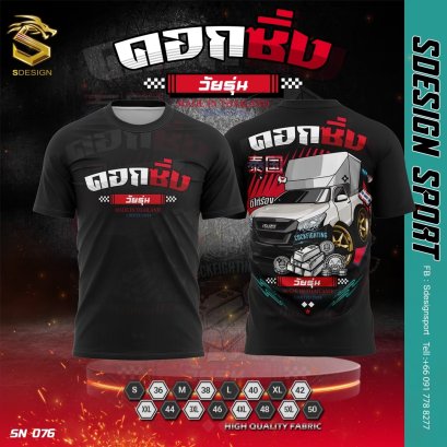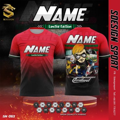 รูปแบบสินค้า : เสื้อซิ่ง คอกลม แขนสั้น พิมพ์ลายทั้งตัว เส้นใยผ้าทอเนื้อผ้า "NANOTEC POLYEASTER 100%" คุณภาพสูง (ผ้ามาโครเนื้อละเอียด)