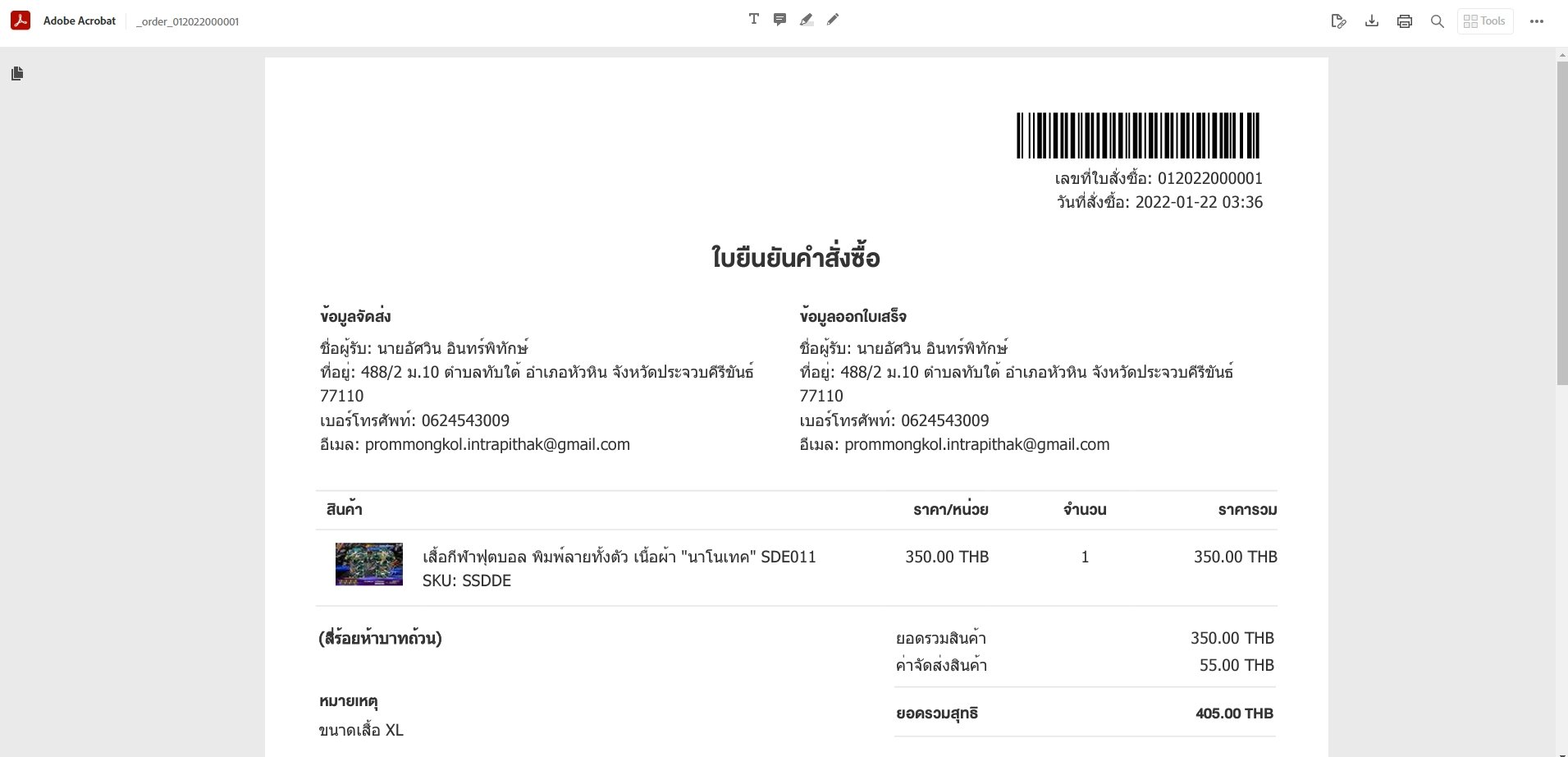 13. กรอกขนาดที่ต้องการเรียบร้อย ดูสรุปรายการสั่งซื้อสินค้า