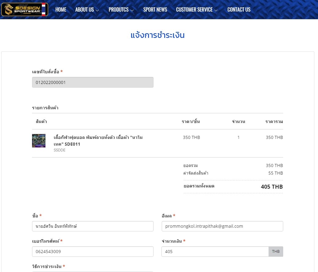1. เปิดหน้าเว็บ https://www.sdesignsportswear.com