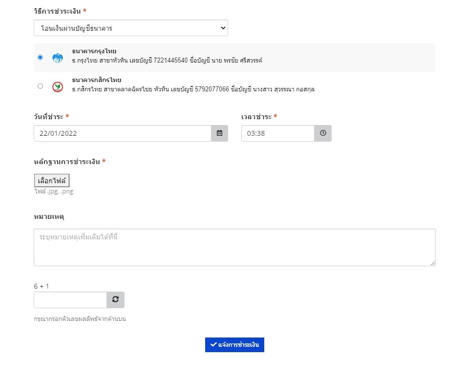 23.เมื่อโอนเงินเสร็จแล้วให้กด แจ้งการชำระเงิน และส่งข้อมูลสคิปโอนเงิน เพื่อยืนยันกาณโอนเงิน