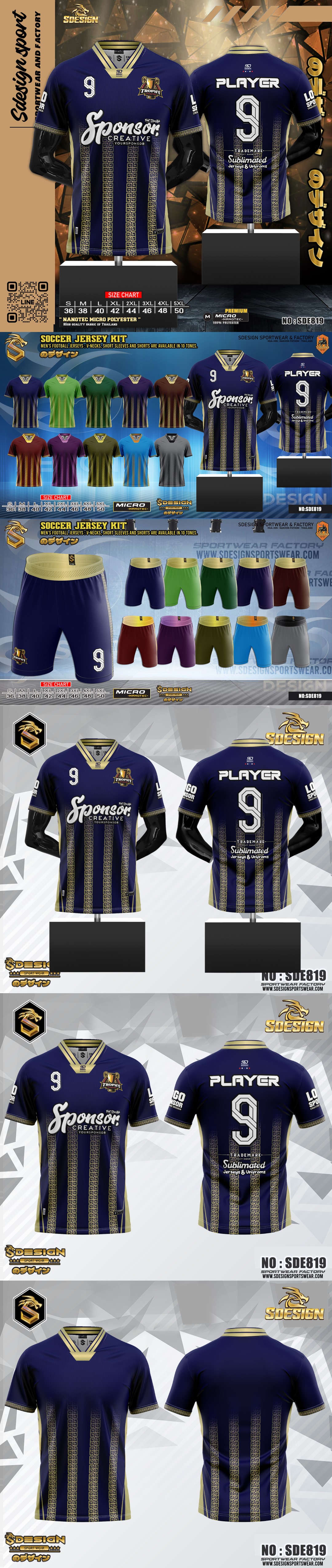 รูปแบบเสื้อผ้า : คอวีพับ แขนสั้น และ กางเกงฟุตบอล ขาสั้น งานออกแบบปรับโทนสี ให้ ลูกค้าเลือกได้ทั้งหมด 10 โทนสี