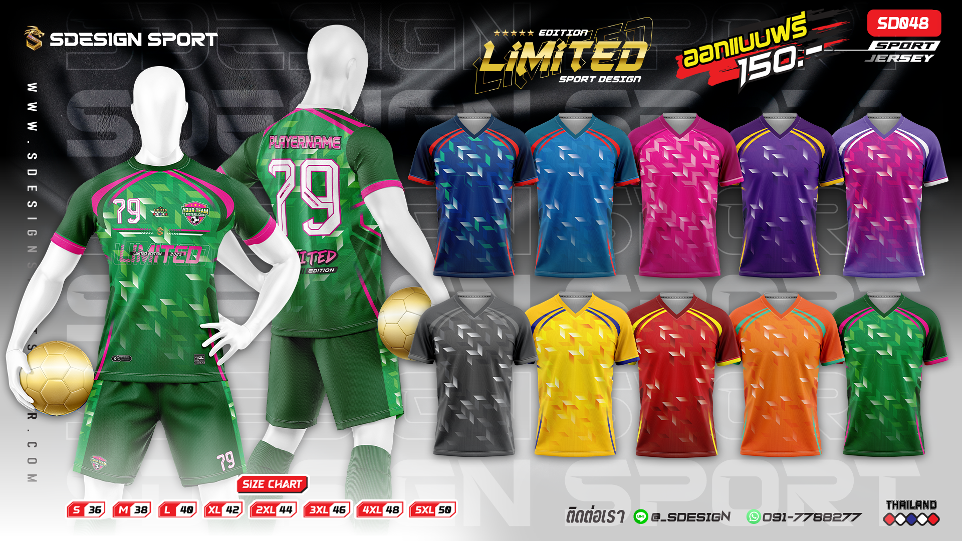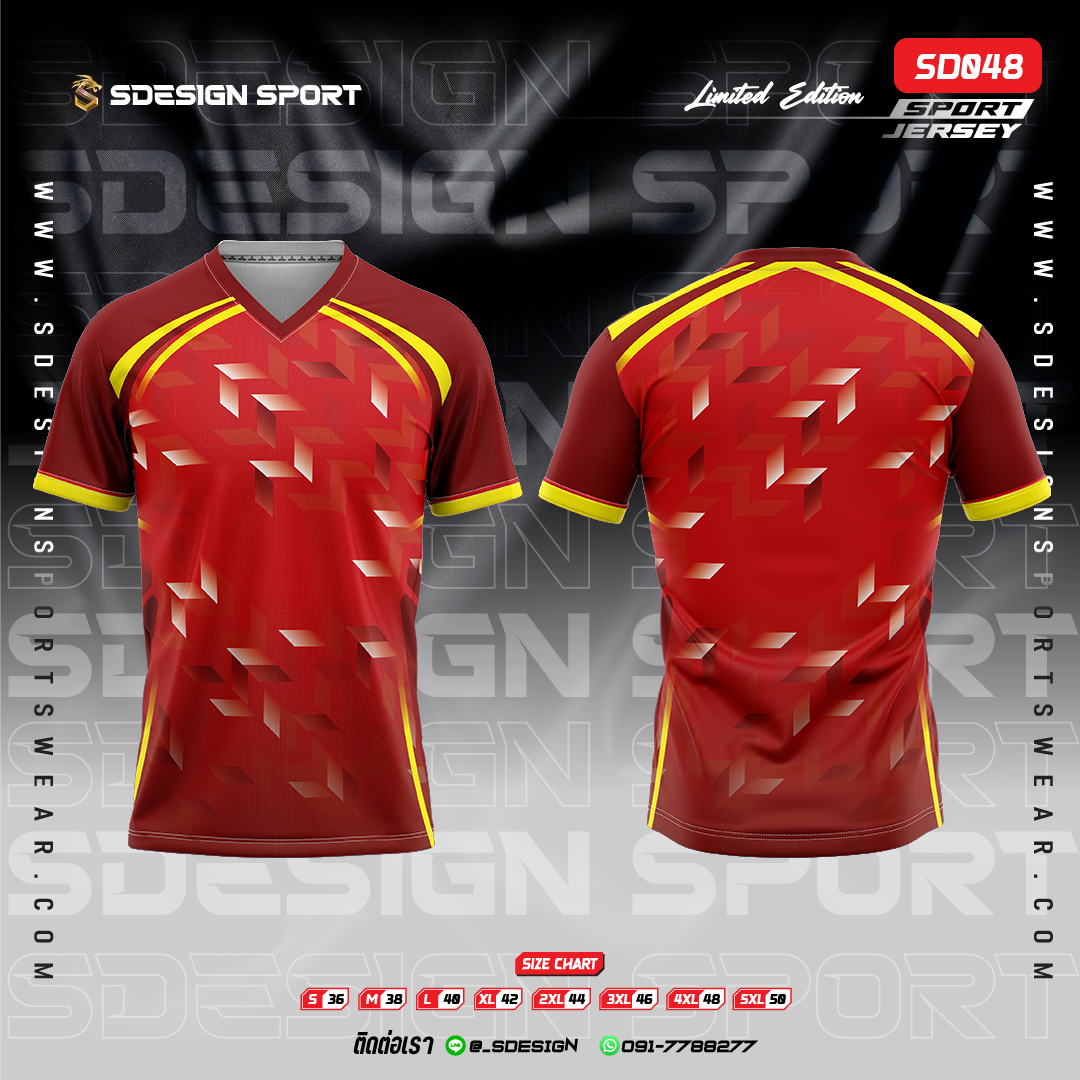 เสื้อกีฬาฟุตบอล พิมพ์ลายทั้งตัว เนื้อผ้า "นาโนเทค" SD048
