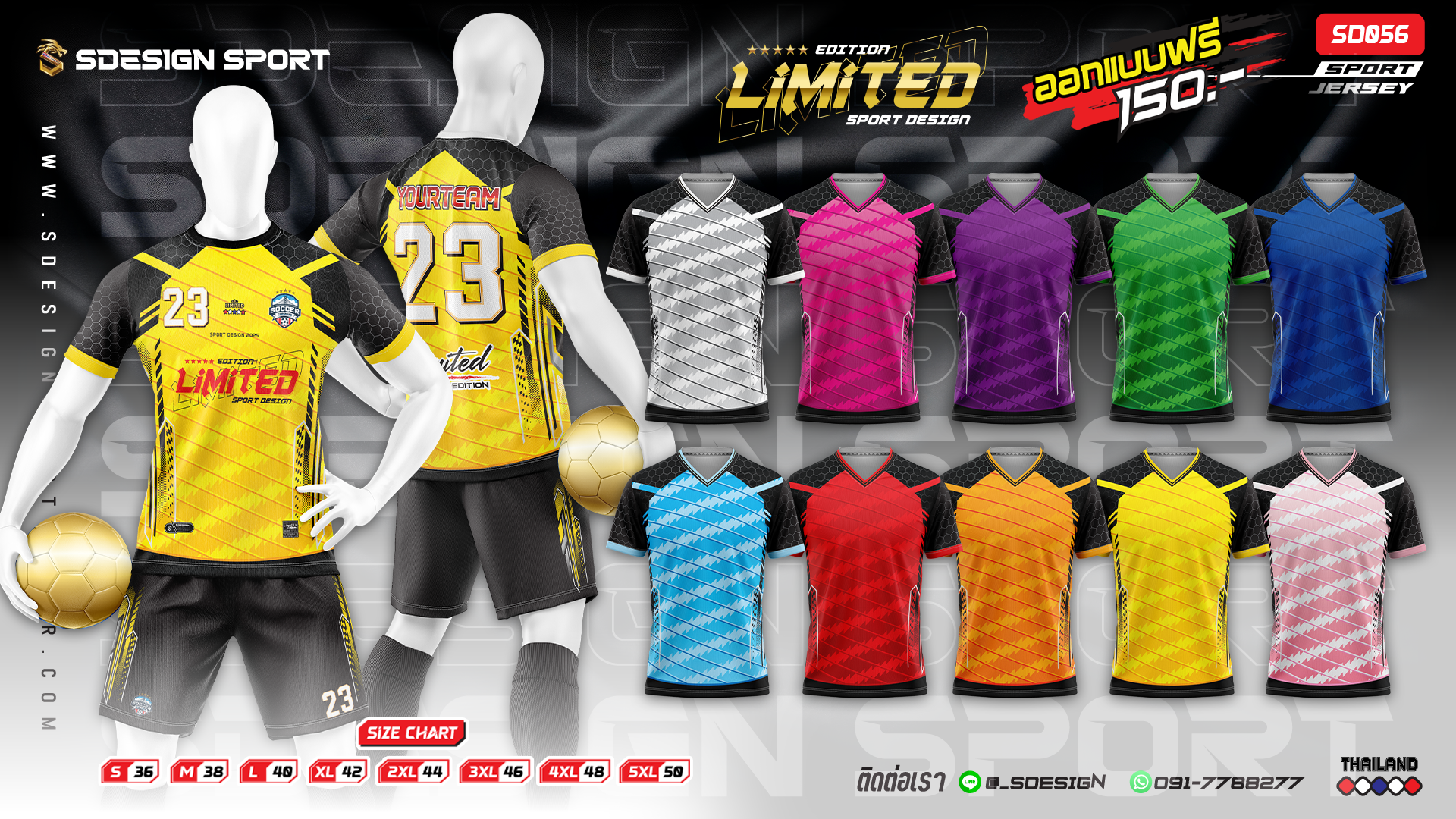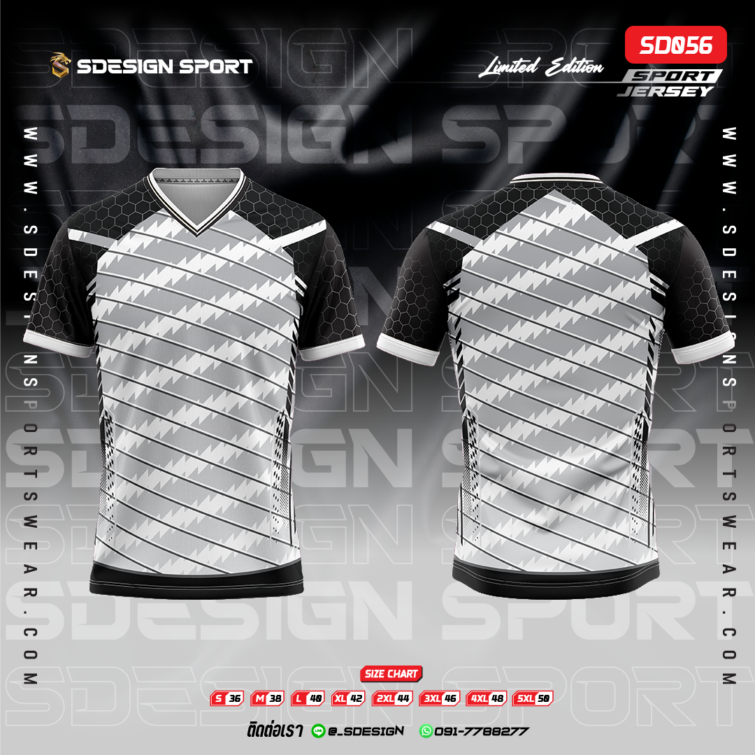 เสื้อกีฬาฟุตบอล พิมพ์ลายทั้งตัว เนื้อผ้า "นาโนเทค" SD055
