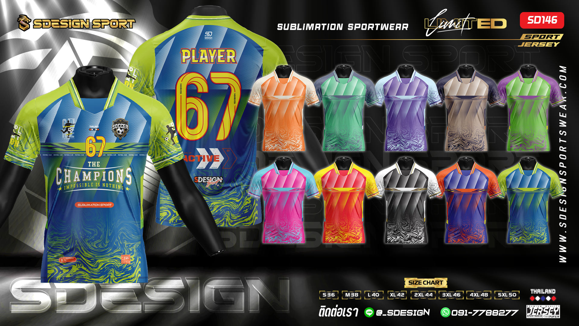 เสื้อกีฬาฟุตบอล พิมพ์ลายทั้งตัว เนื้อผ้า "นาโนเทค"SD146