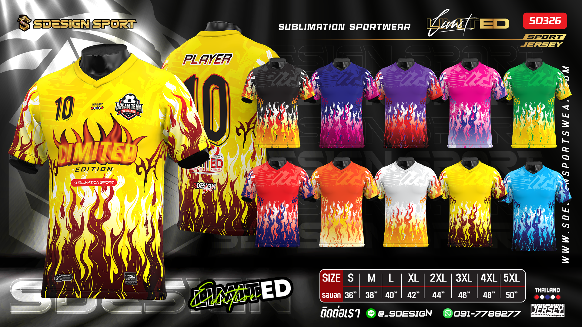 เสื้อกีฬาฟุตบอล พิมพ์ลายทั้งตัว เนื้อผ้า "นาโนเทค"SD326
