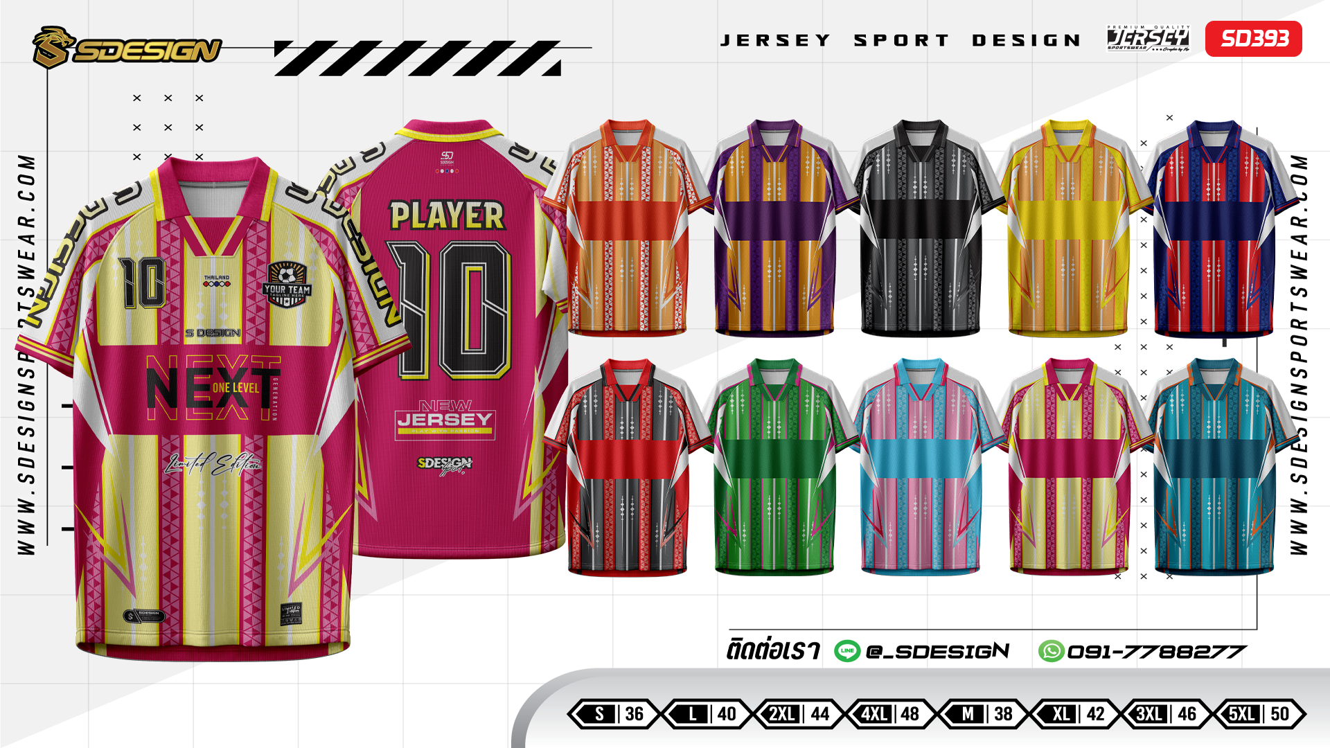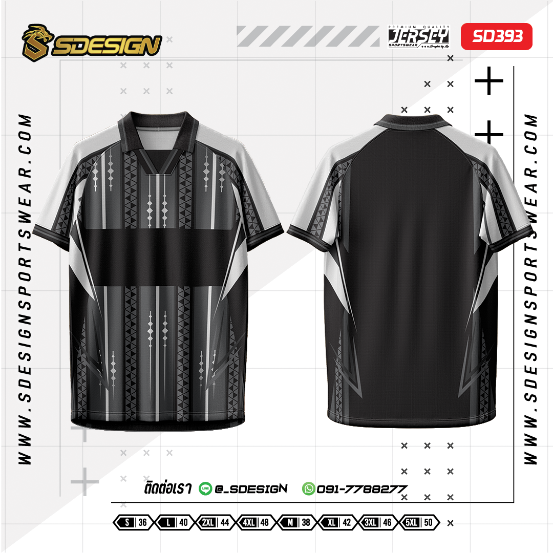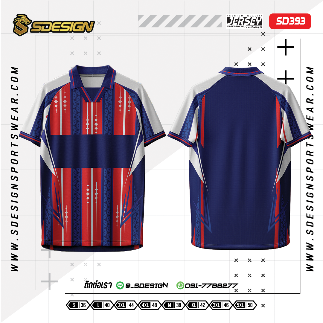 เสื้อกีฬาฟุตบอล พิมพ์ลายทั้งตัว เนื้อผ้า "นาโนเทค"SD 393